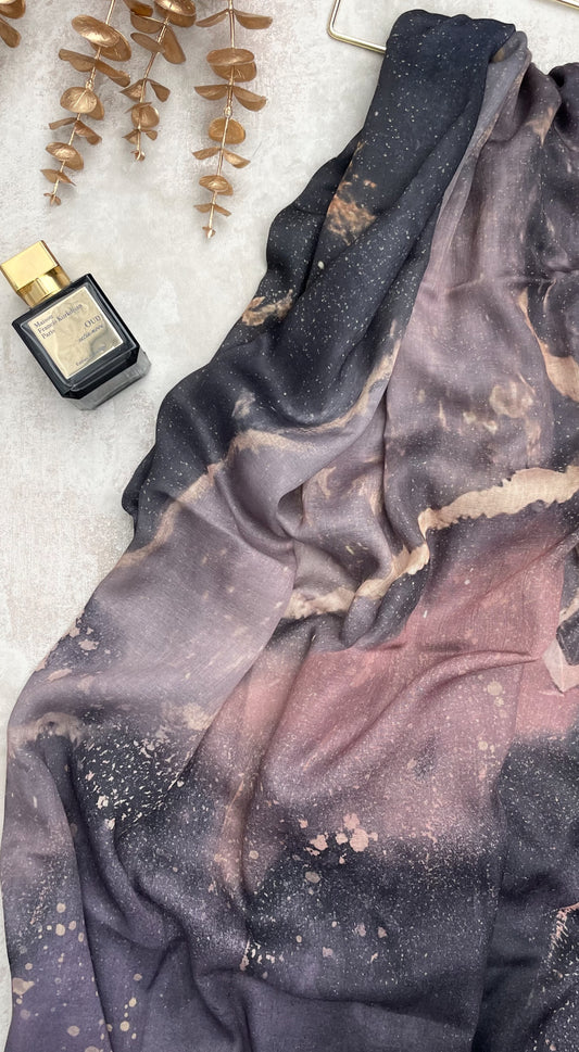 Water coloured Modal Printed zatar Denim Blue Hijab