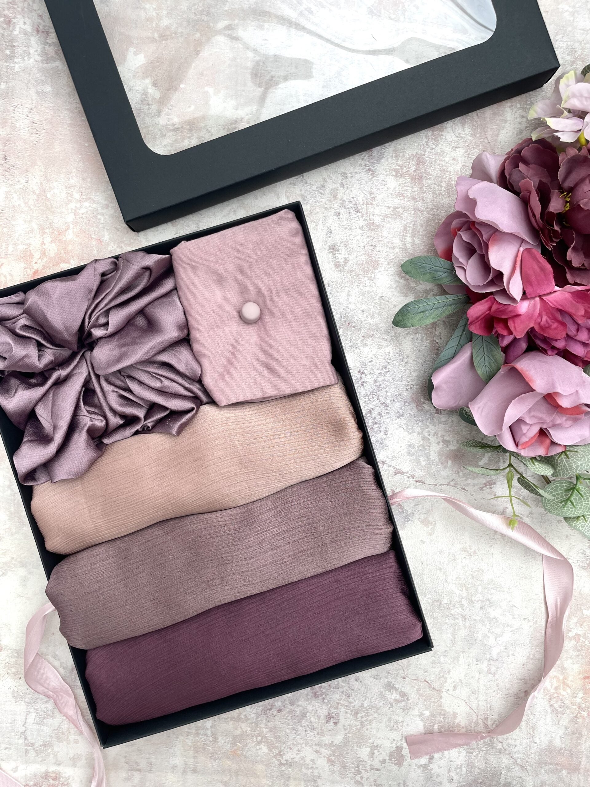 matt Dubai crinkle silk 3 rose pink hijab gift set inc accessories