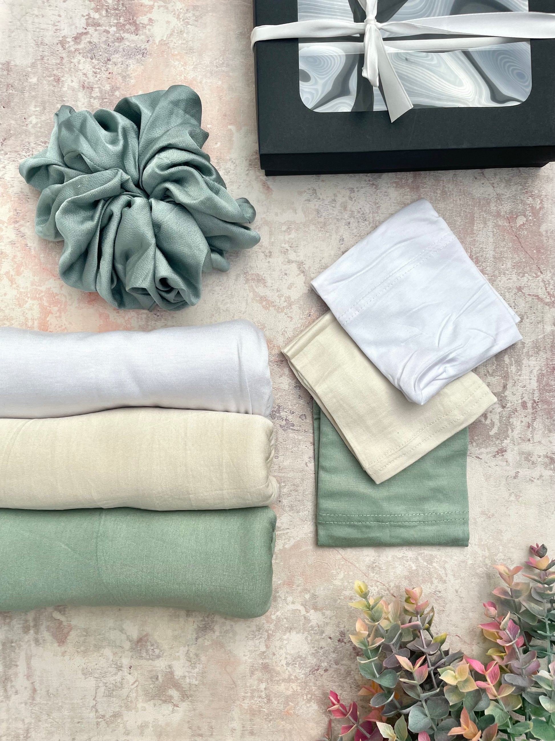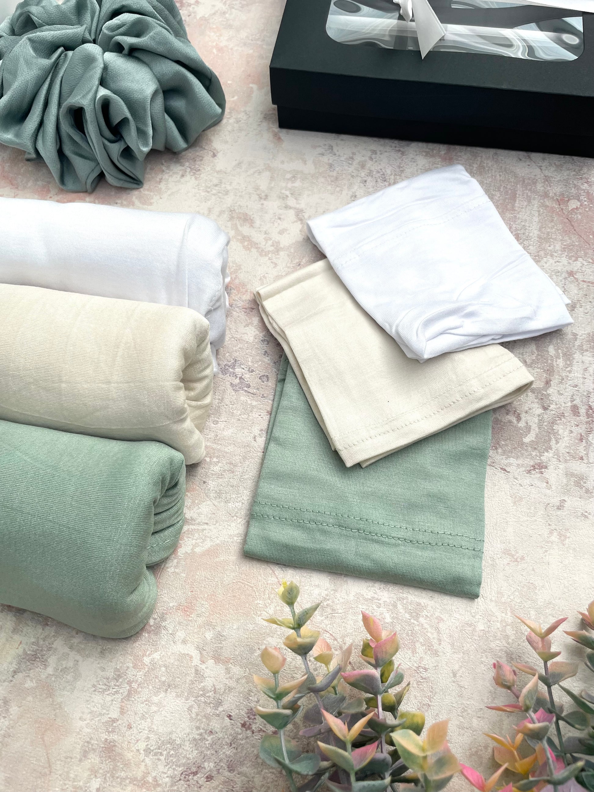 These classy Jersey Hijab gift set have a soft light texture feel so you can wrap it securely around your head and it will stay in all day making it very practical. Made from high quality fabric and stitching with plenty of stretch so can be styled & layered in many different ways so makes it hard not to love this collection especially with the range of colours available at Hijab Junkie. The box set comes with matching scrunchie and jersey tube caps that are absolutely beautiful with the perfect stretch and high end premium jersey used.
