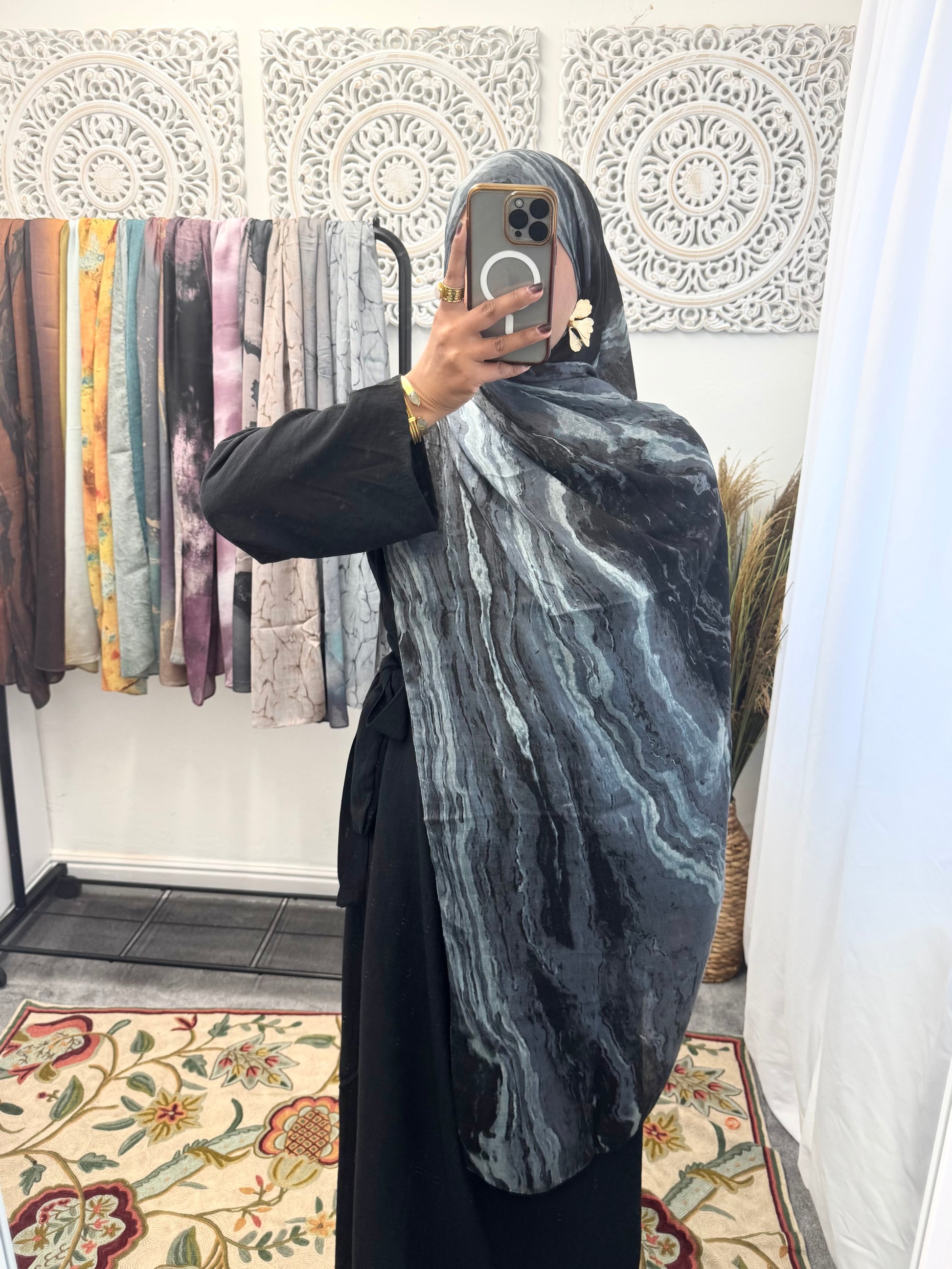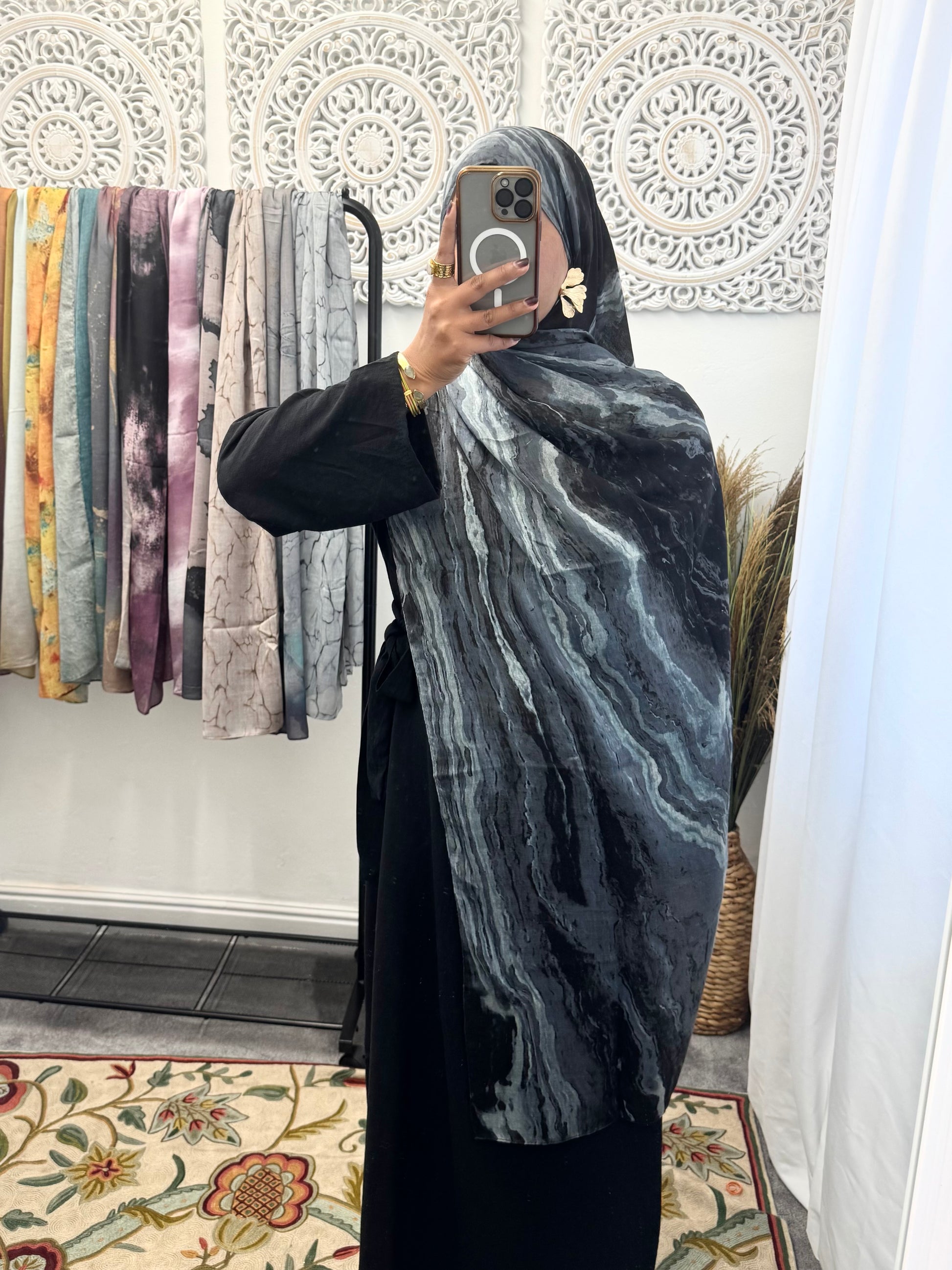 Water coloured Modal Printed black volcano Hijab