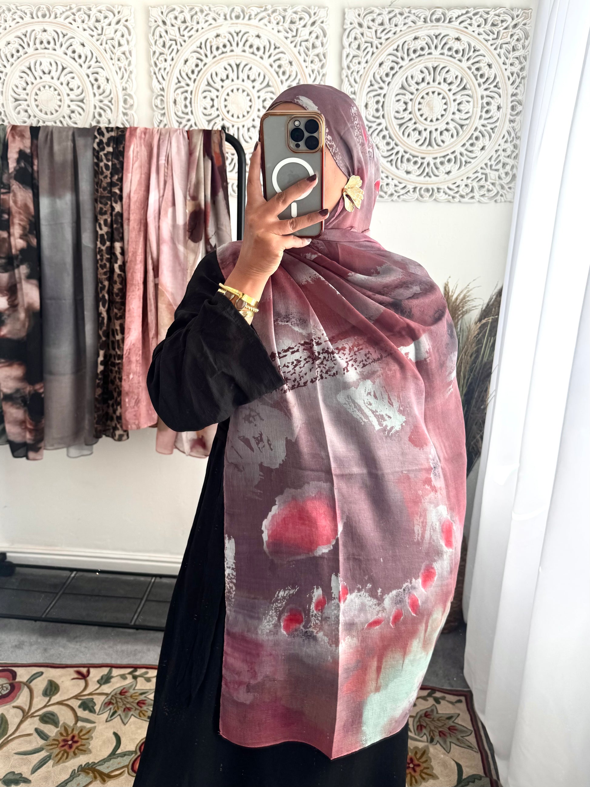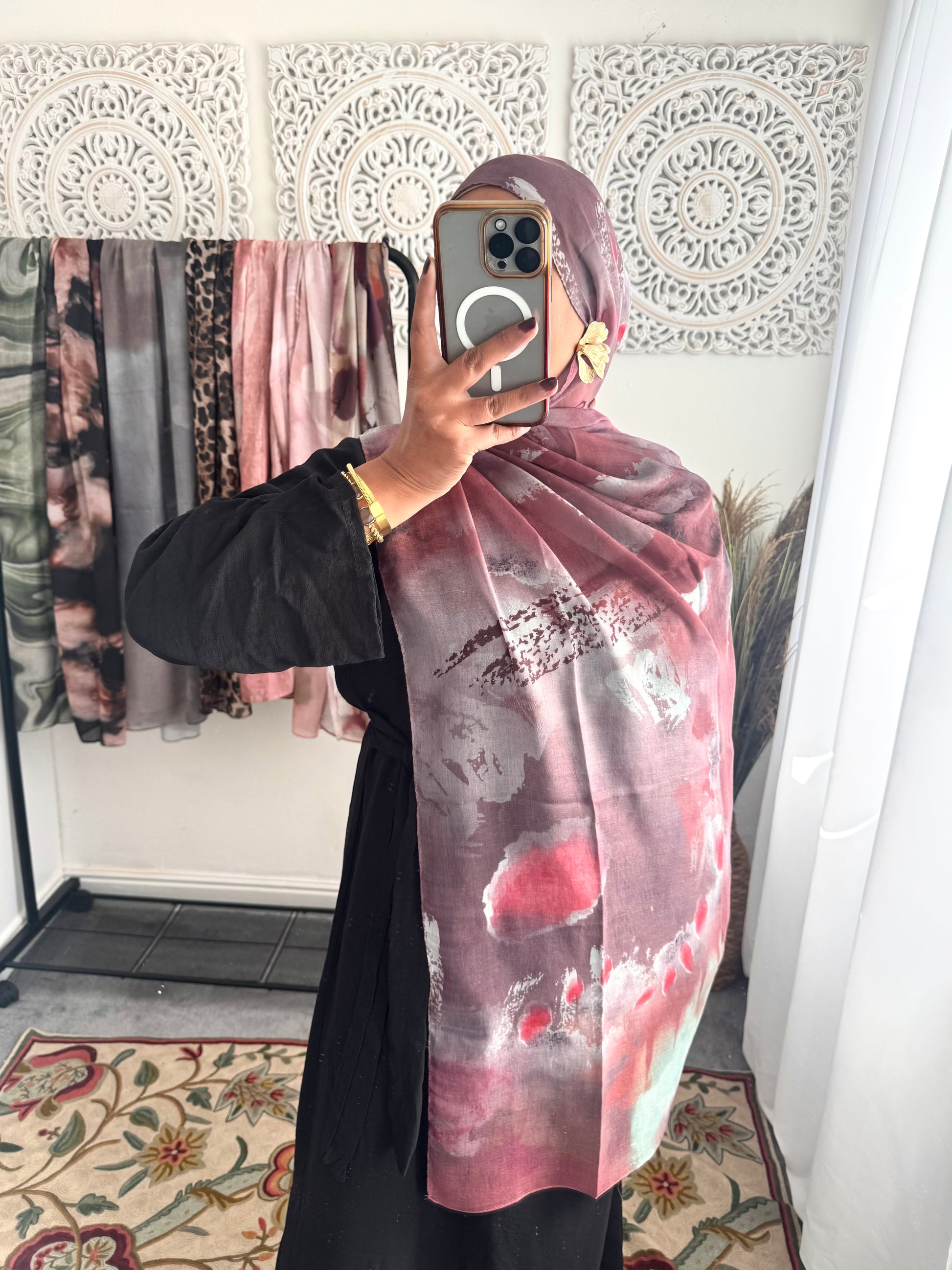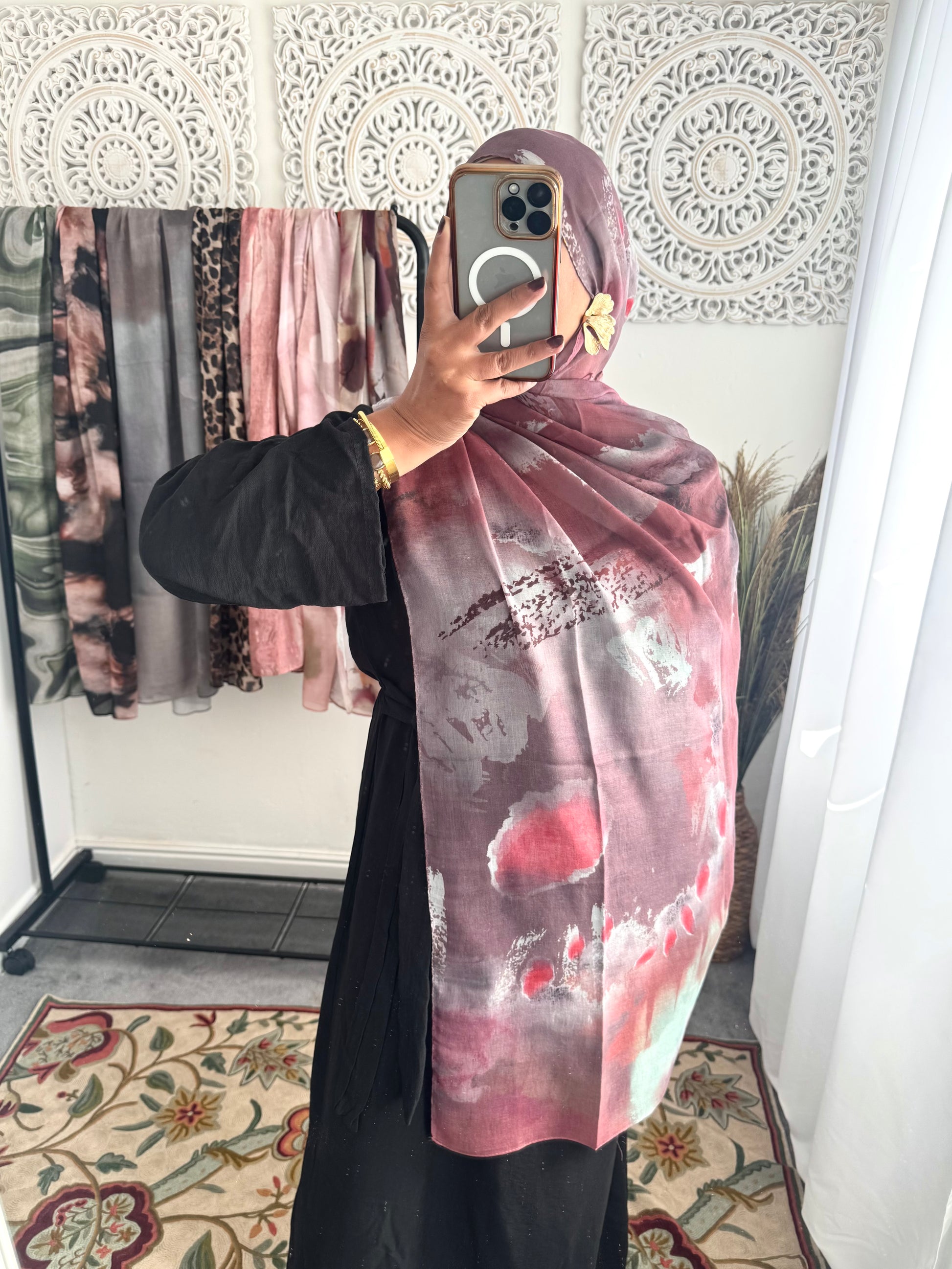 Water coloured Modal Printed pink raspberry Hijab