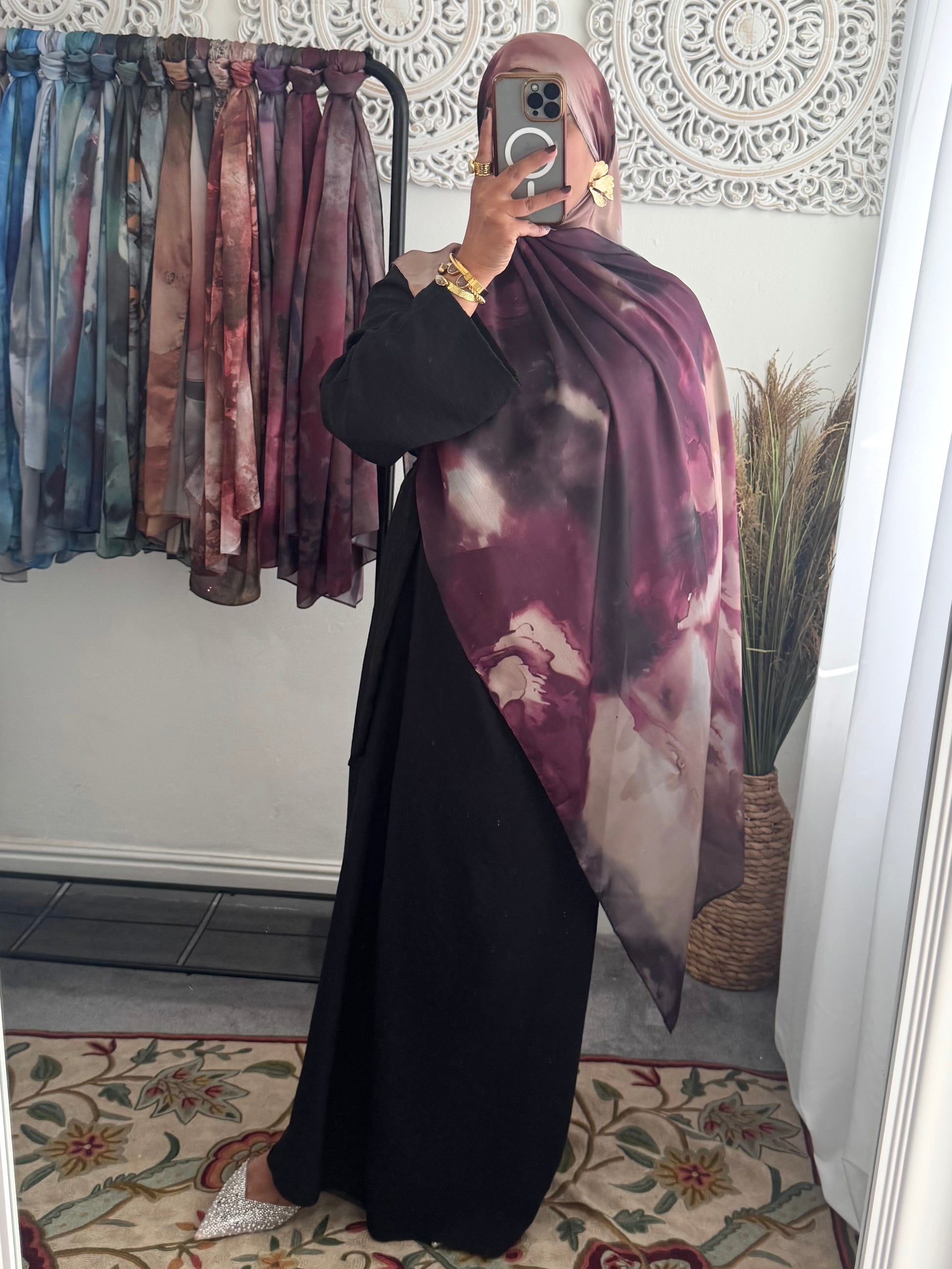 These silk modal printed hijabs offer a beautiful blend of softness and elegance, making them a timeless addition to any collection. With their graceful flow and lightweight feel, they drape effortlessly, creating a classy and refined look for any occasion.